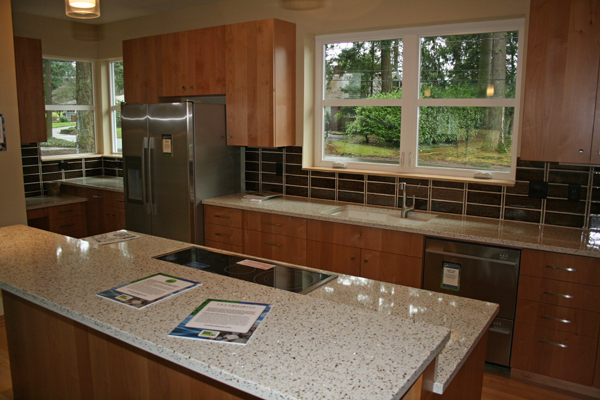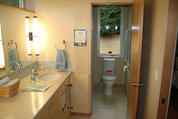 The Water House, from a pure green building stand point, reportedly will be the first EPA WaterSense-certified home in Oregon. WaterSense is a federal program designed to make homes at least 20 percent more efficient when it comes to water use. The home is also both certified Earth Advantage Platinum and Energy Star, meaning it is extremely energy efficient when it comes to a list of features such as high efficiency appliances, spray in-place foam insulation and a ductless heat pump system.
